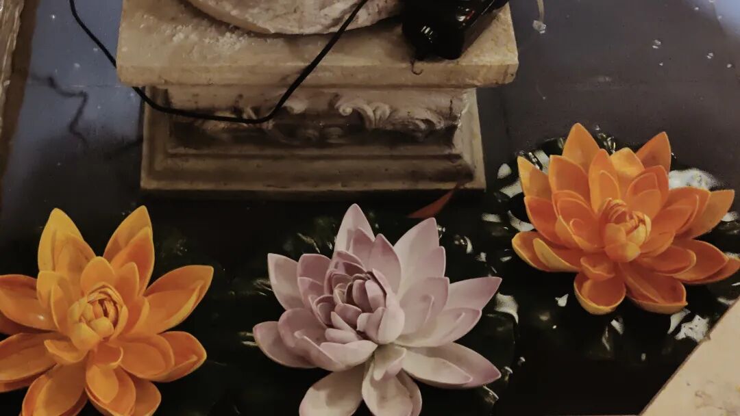 不仅是装修,洗脚城里的陈设也与众不同。我对洗脚城印象最深的植物是这样的:三朵世界上最鲜艳的荷花,飘在水池上。这真是我见过的最塑料的仿真花,没有一朵颜色和真荷花接近。