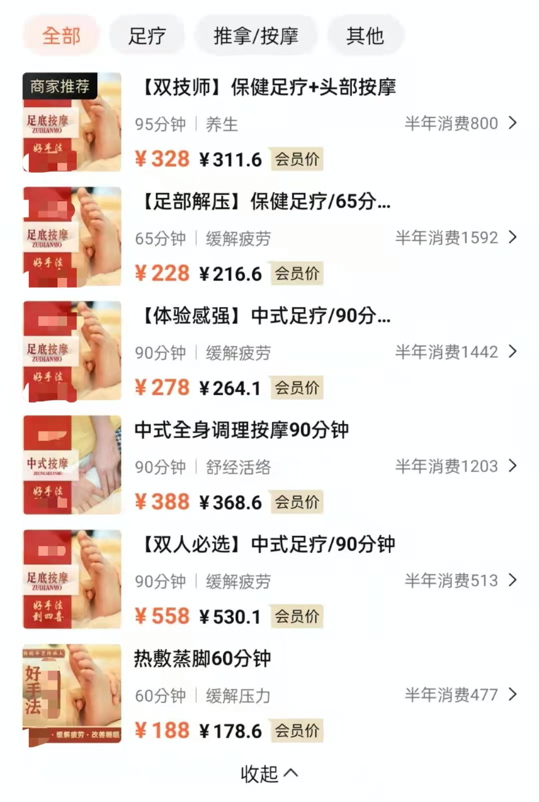 那天中午,我和朋友分别买了店里销量最好的两个套餐:龙首足道:159元80分钟,和印象贵足,170元90分钟,内含的小项目让人眼花缭乱,比如秘制藏汤浴足、头部肩颈经络舒压、上肢肌肉放松、足部反射调理、腿部经络疏通、腰背通经强脊……总结下来就是:从头按到脚。