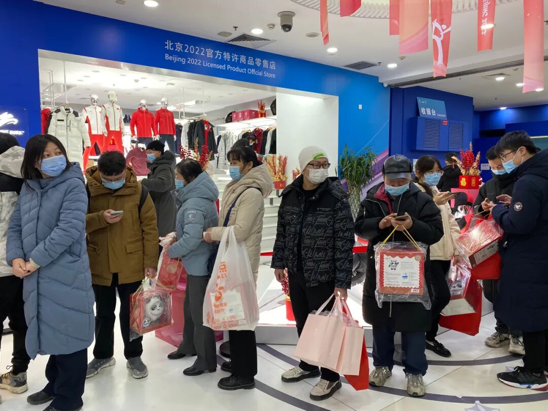 ▲ 2月5日一大早,顾客在冬奥特许商品旗舰店门外排成了长龙。曹默涵 / 摄