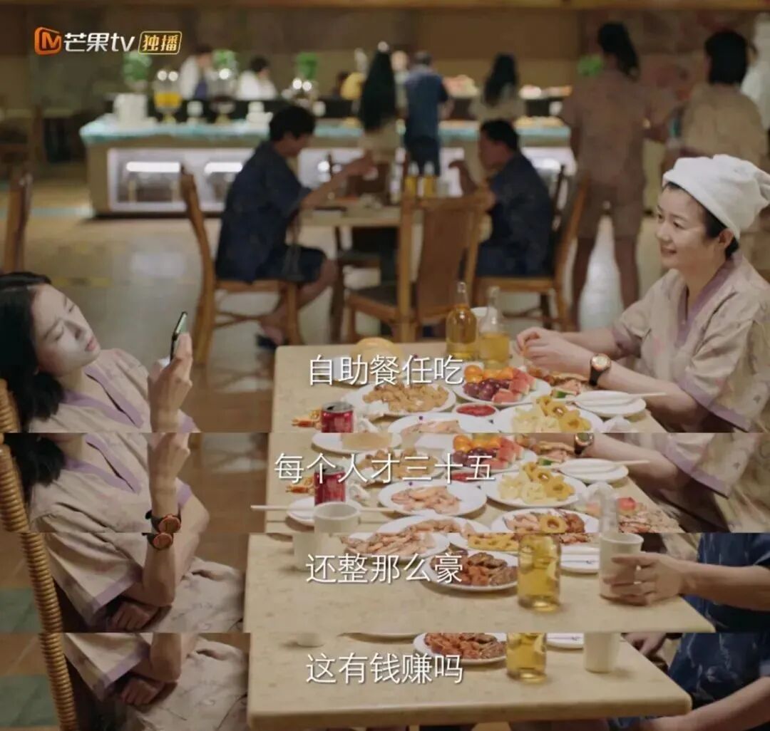 在东北洗浴中心里,确实能看到各种日常——叫我宝贝的沈阳大姐,边搓澡边和女儿聊外孙的围棋班;一位年轻母亲,领着读小学的女儿穿梭在淋浴间的过道上,“带你来高档澡堂玩玩”;休息大厅的躺椅上,四十岁左右的大哥一边按脚,一边开着电话商务会议;还有两个搞互联网的,在讨论元宇宙。