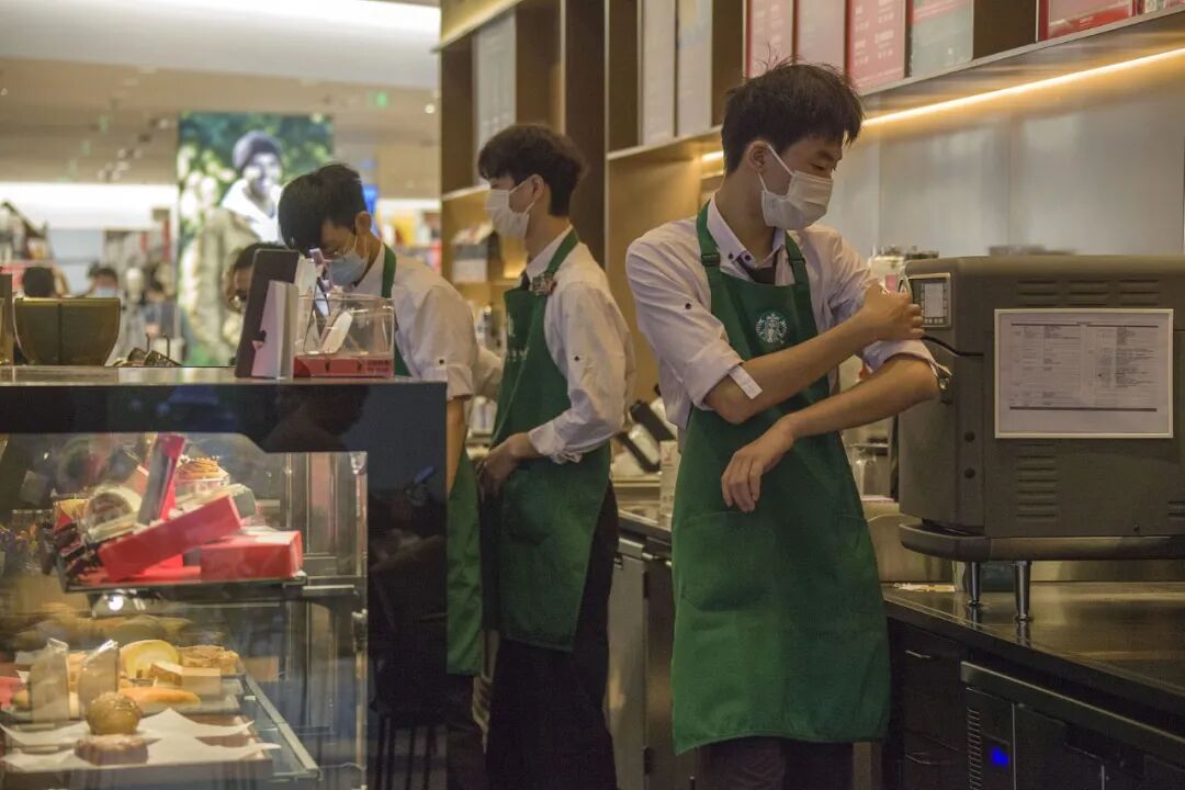 ▲ 南京某星巴克咖啡,员工们正在工作。图 / 视觉中国