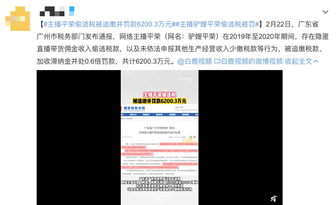 事发之后,一名自称平荣的用户@平荣199007在社交平台发文称,过去,她把主要精力都放在直播业务上,忽视了对财税知识的学习,加之税收法律意识淡薄,才导致了这样的后果,“我们团队从去年底开始已经暂停直播业务,对整个团队进行规范跟整顿。今后,将更加合规经营,依法缴纳税款,更好地肩负起主播的社会责任,将以更高标准要求自己,积极推进直播电商行业的健康发展”。