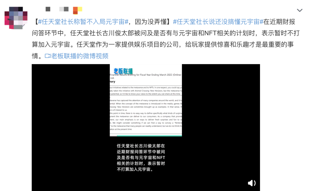 简单说,虽然你们都觉得任天堂搞元宇宙很有优势,但不好意思,我们暂时不跟进了,因为我们也没完全搞懂。