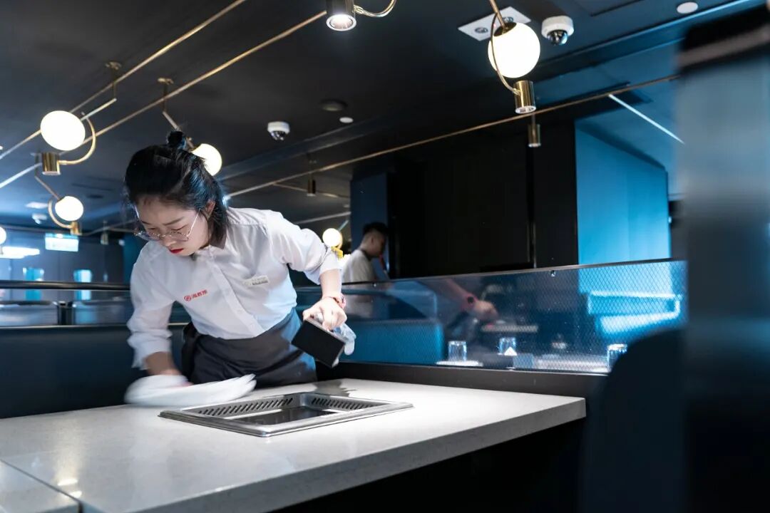 ▲ 海底捞员工在清洁桌面。图 / 视觉中国