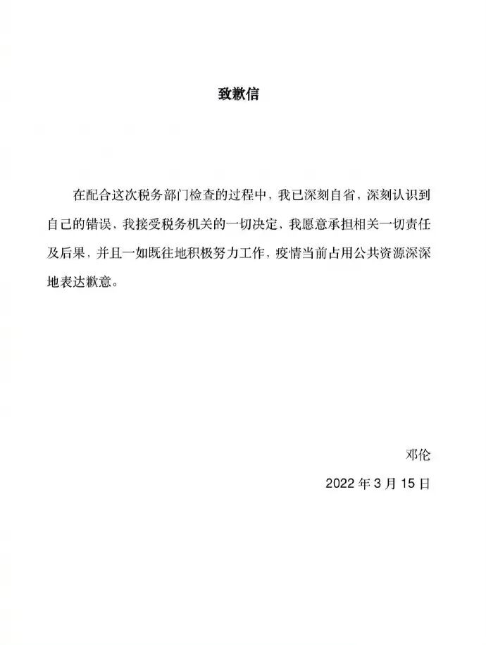 ▲ 邓伦道歉信。图 / 微博