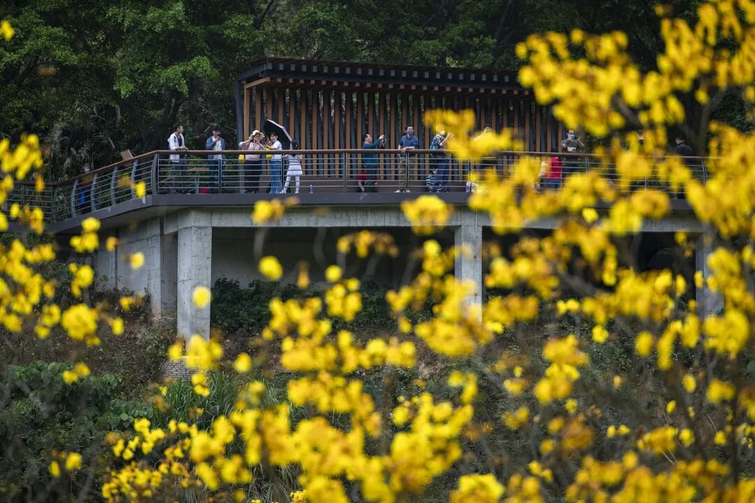 ▲ 黄花风铃木迎风绽放。图 / 视觉中国