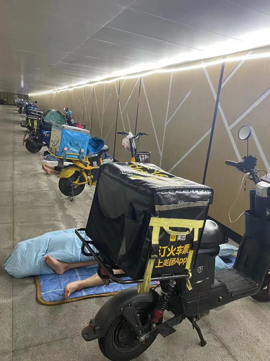 桃源地铁站的几位外卖小哥因为害怕被封在小区内,无法出门挣钱,索性露宿街头,南山区委会临时调用了活动场所,并给他们派发了物资。在深圳市商务局的指导下,饿了么联合飞猪,也拿出部分酒店为有需要的外卖员提供洗漱、休息等服务区。