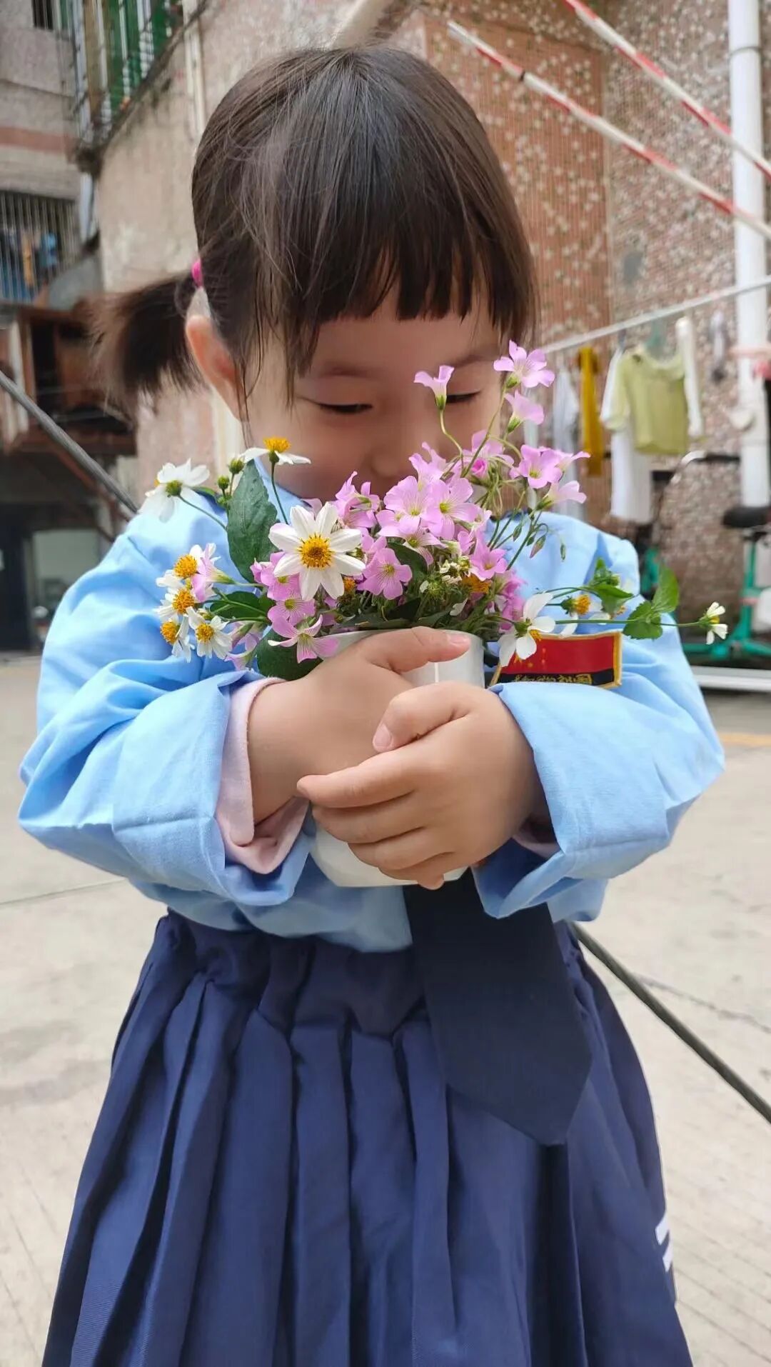 ▲ 范明月女儿抱着摘来的野花。图 / 受访者提供
