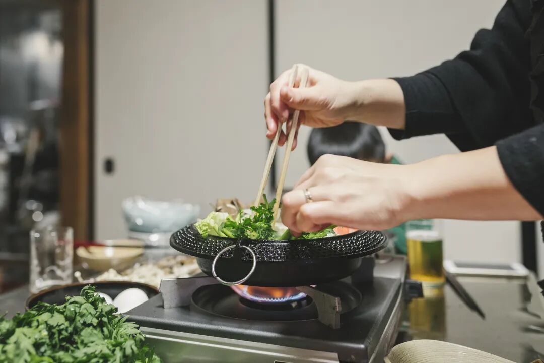 一番整饬,脏乱的农村小院变成了一个随便在哪里拍照都特别“出片”的空间。生活馆的装潢比画室更精致,鹅卵石地面打底,青石板小路从门口通往餐厅。坐下来,兼职的大学生服务员会递上一份设计简洁、黑白配色的“冷寂风”菜单,上面的寿喜锅、韩式烤肉,是小县城不太常见的菜式,也有着不太常见的价格,一份寿喜锅要198元。