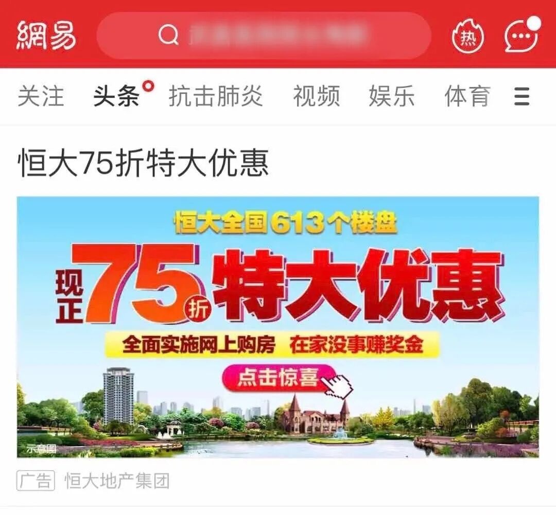 ▲ 恒大地产75折优惠广告几乎刷屏各大APP开屏和首页。图 / 网络