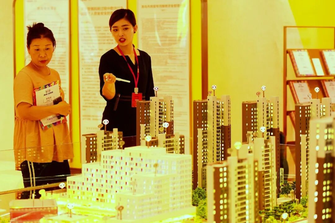 ▲ 售楼大厅,销售人员为客户介绍楼盘。图 / 视觉中国