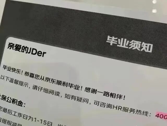 ▲ 京东给被裁员工发的“毕业信”。图 / 网络