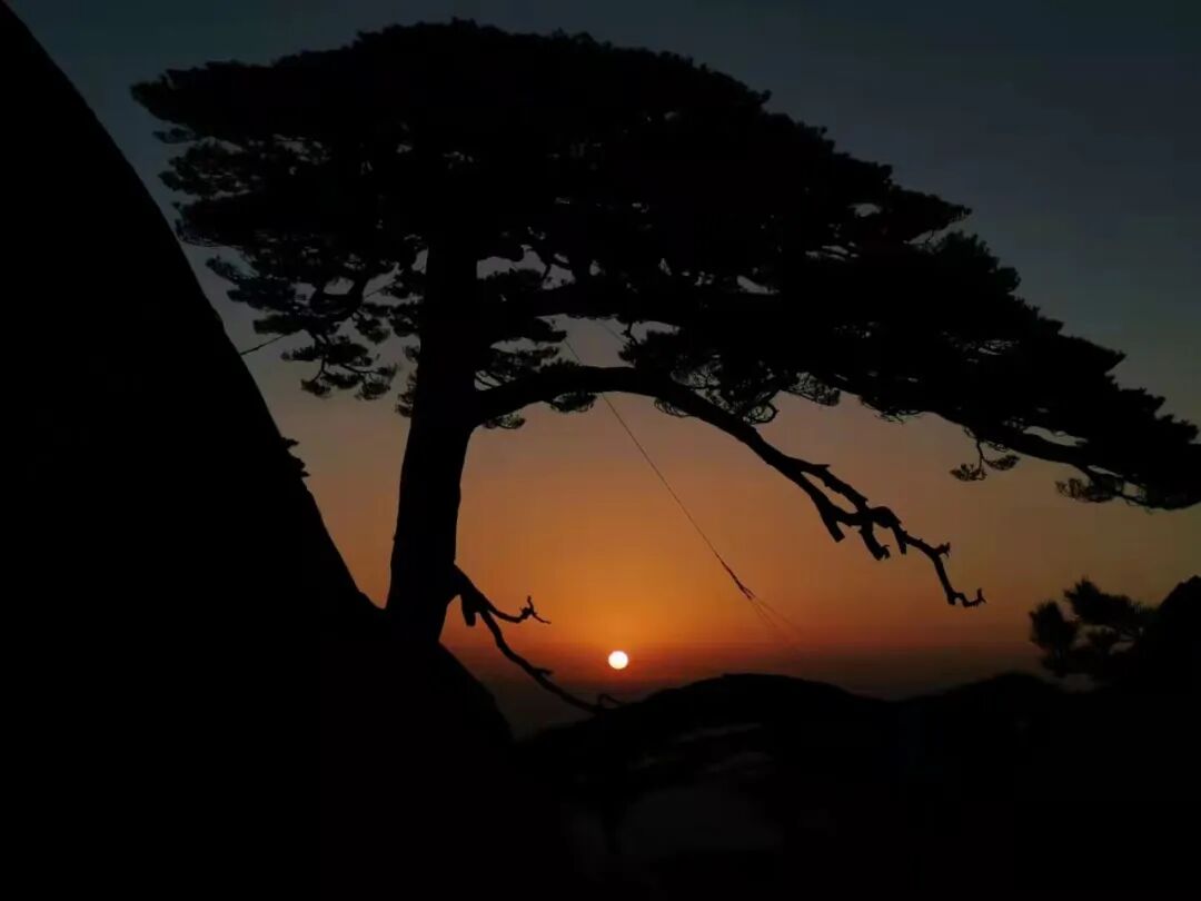 ▲ 黄山日出,迎客松成为剪影。 图 / 受访者提供
