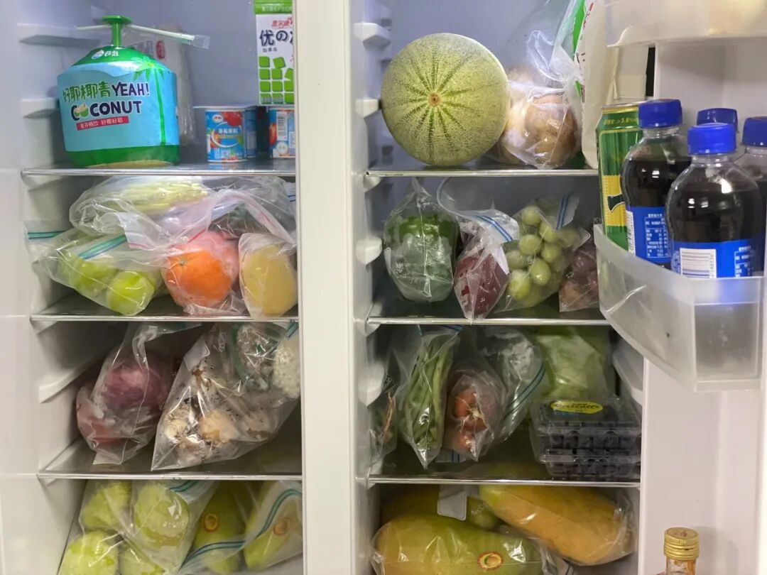 正在上海居家办公的Vivi,平时是带饭的上班族,所以一直都有囤货做饭的习惯。她每周会进行买2次大采购,冰箱还有妈妈过年给准备的腊鱼、腊肉,因此冰箱一直是满的,这也在此次疫情居家时帮了她非常大的忙。