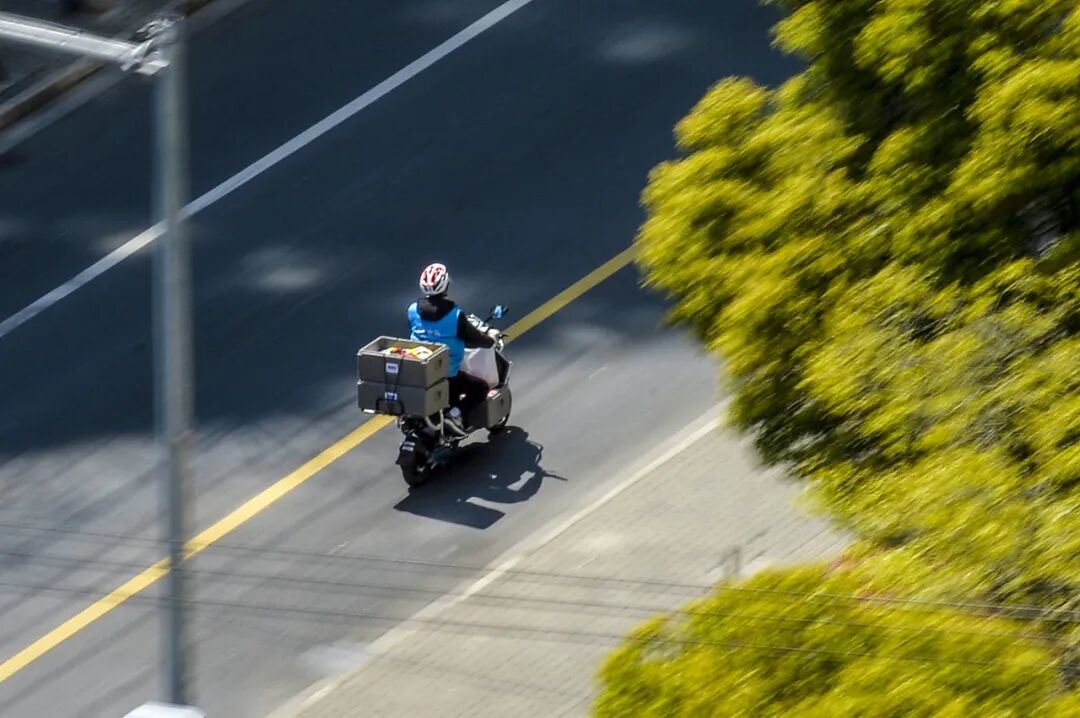 ▲ 外卖员们在空旷的道路街头奔驰。图 / 受访者提供