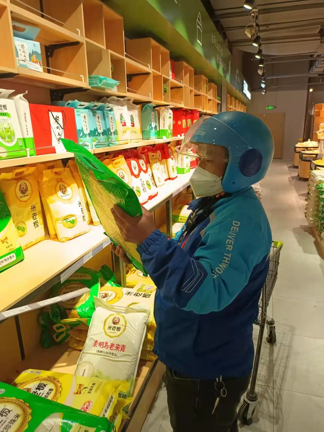 当时上海正在下雨,他实在没办法,后来听说有个同事在另一家超市里见到了,就让这个同事帮忙代买,他赶紧骑车过去取。