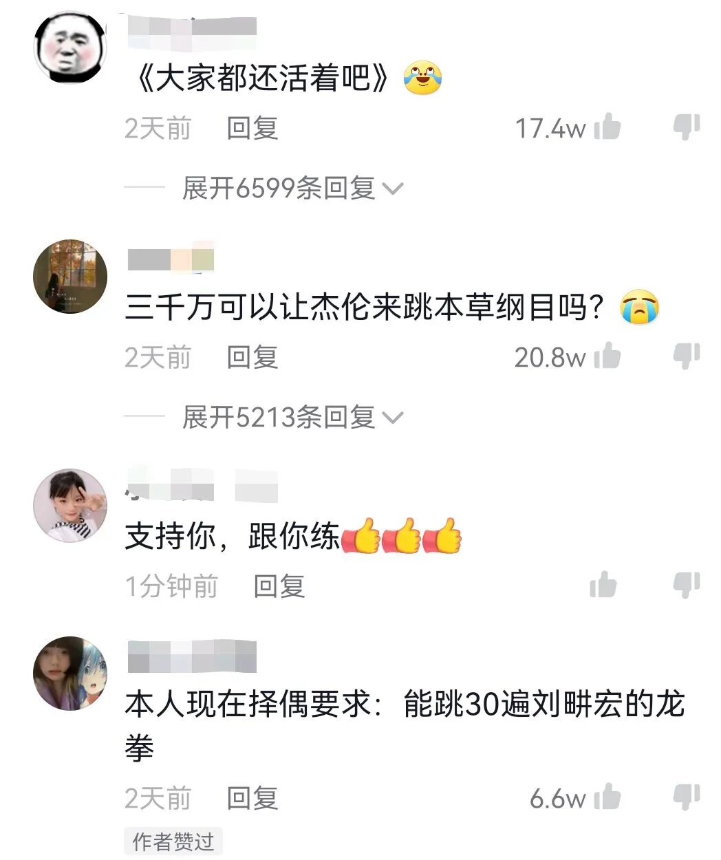 ▲ 《龙拳》视频下方网友的调侃。图 / 刘畊宏的抖音账号