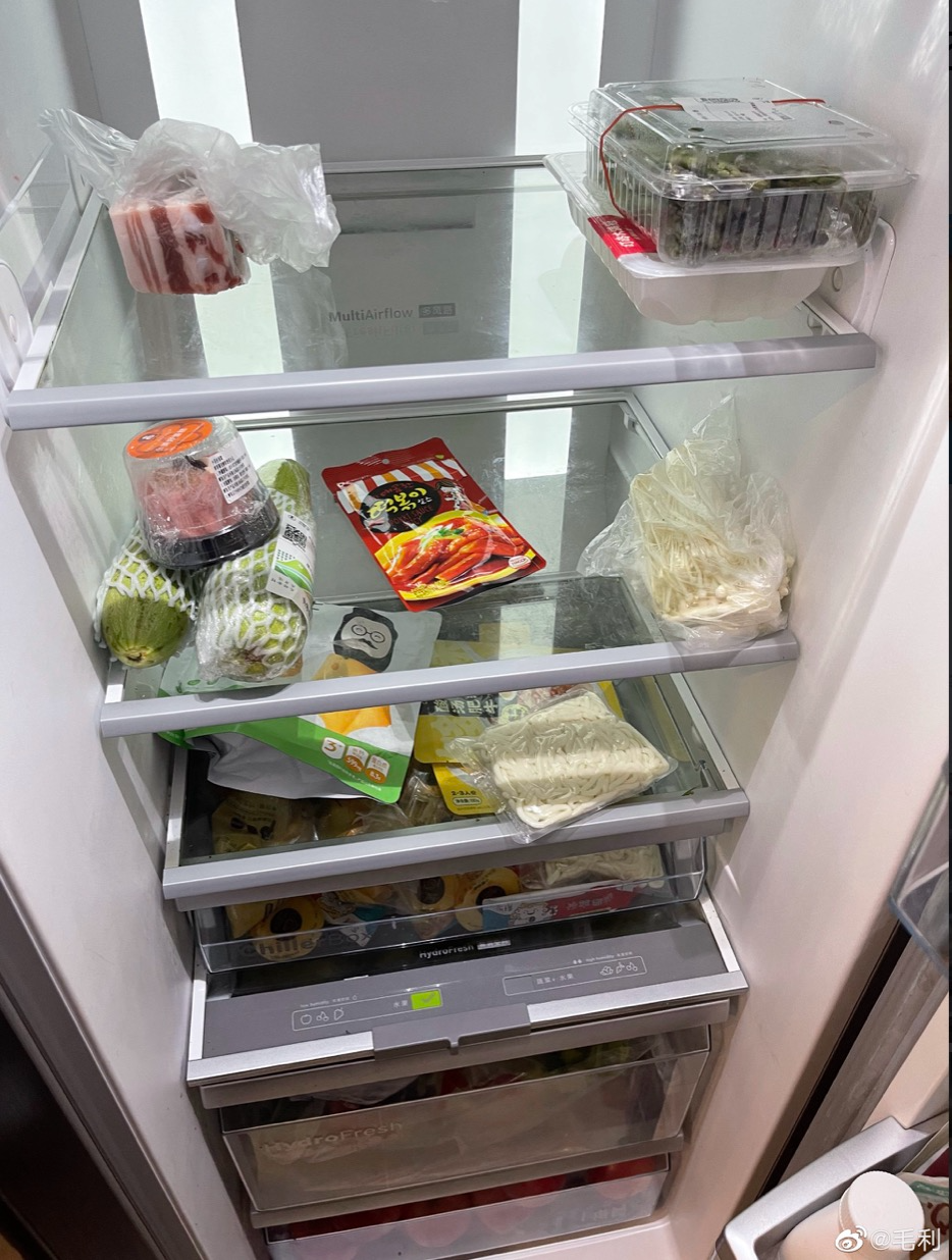 ▲ 4月8日,毛利冰箱中的食材所剩无几。图 / 受访者提供