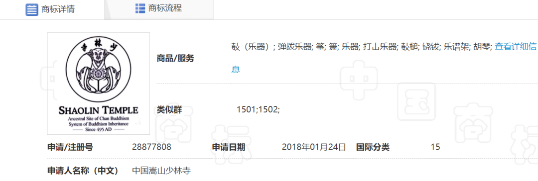 ▲ 其中一个少林寺商标。图 / 中国商标网