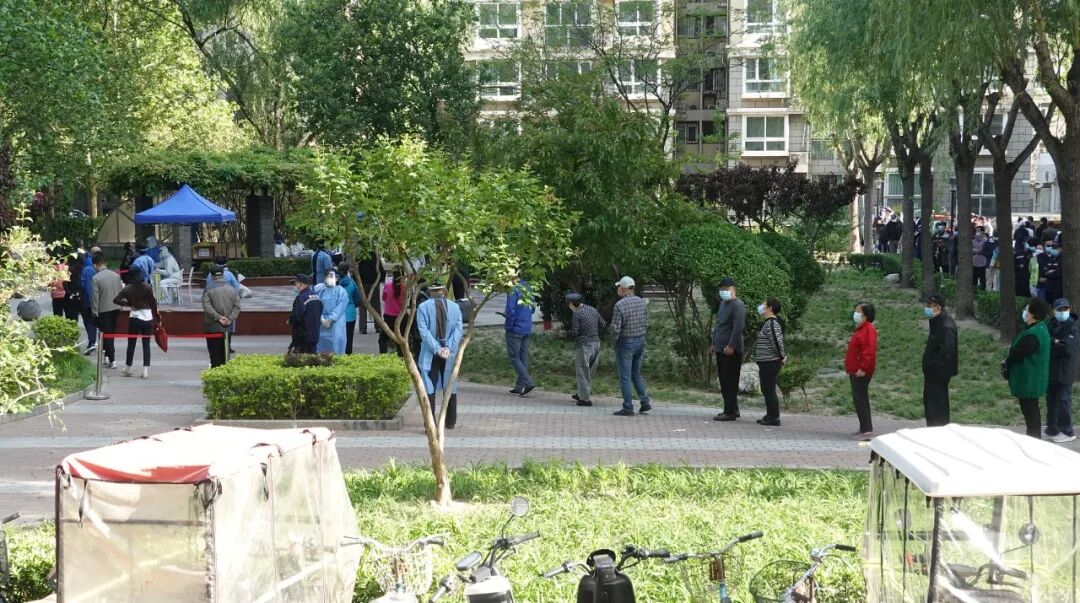 ▲ 朝阳区居民在居委会组织下做核酸。图 / 视觉中国
