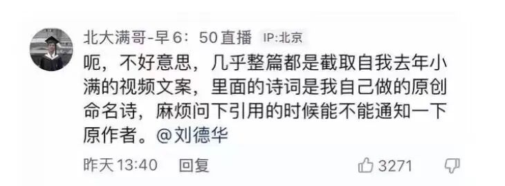 ▲ “北大满哥”表示诗词为自己的原创。图 / 抖音截图