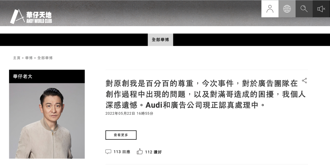 ▲ 刘德华回应广告抄袭事件。图 / 网站截图