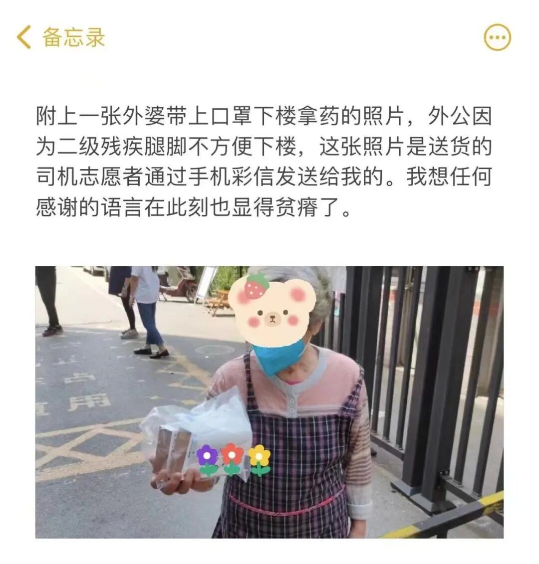 那天,司机在南京路的药店门口排了两个小时,终于买到了药。事后,小姑娘写了一段长长的感谢“小作文”,里面有一句是这样说的——尝试了无数方法,今早幸运的事件发生了,我一分思考都没有就把几千的费用转给一个陌生的微信号码,因为,这是我全部的希望。而它也没有被辜负。