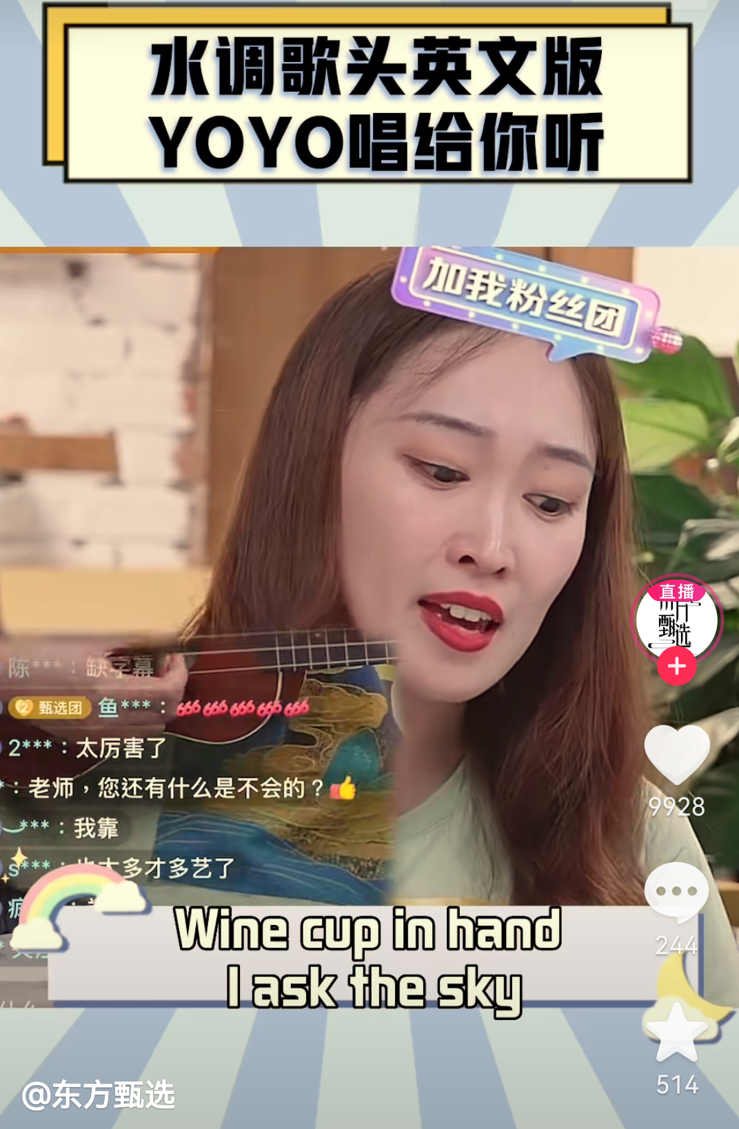 YoYo的第一场直播,就是和俞敏洪搭档。那一场,俞敏洪是绝对的主角,YoYo举着“关注东方甄选”和“左上角领福袋”的牌子,微笑着站在后面,手臂一直没放下。后来复盘时她才想到,完全可以把牌子贴到背景板,但那时已经全身心投入,根本顾不上累不累。