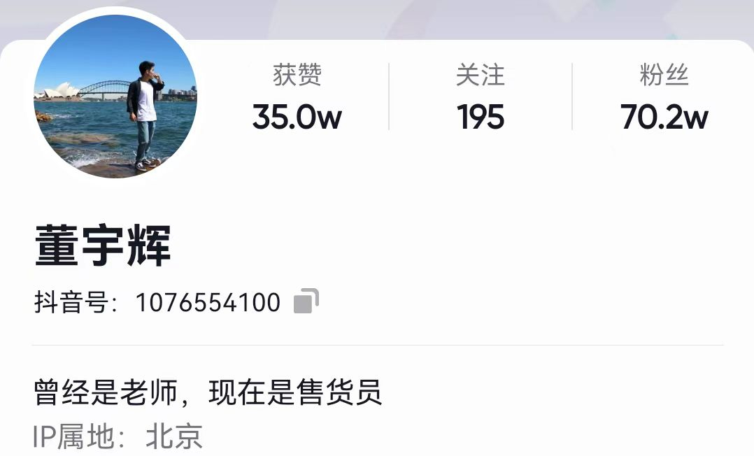 他的想法是:“俞敏洪老师来,观众人数就能到一万多,你在屏幕前就只有一千人、两千人,不是抖音带货不行,不是这个事情做不成,是你不行,是你能力不够。想到这里,你就不要觉得说赛道不值得奋斗,你得修炼自己的本领。很简单的道理。”