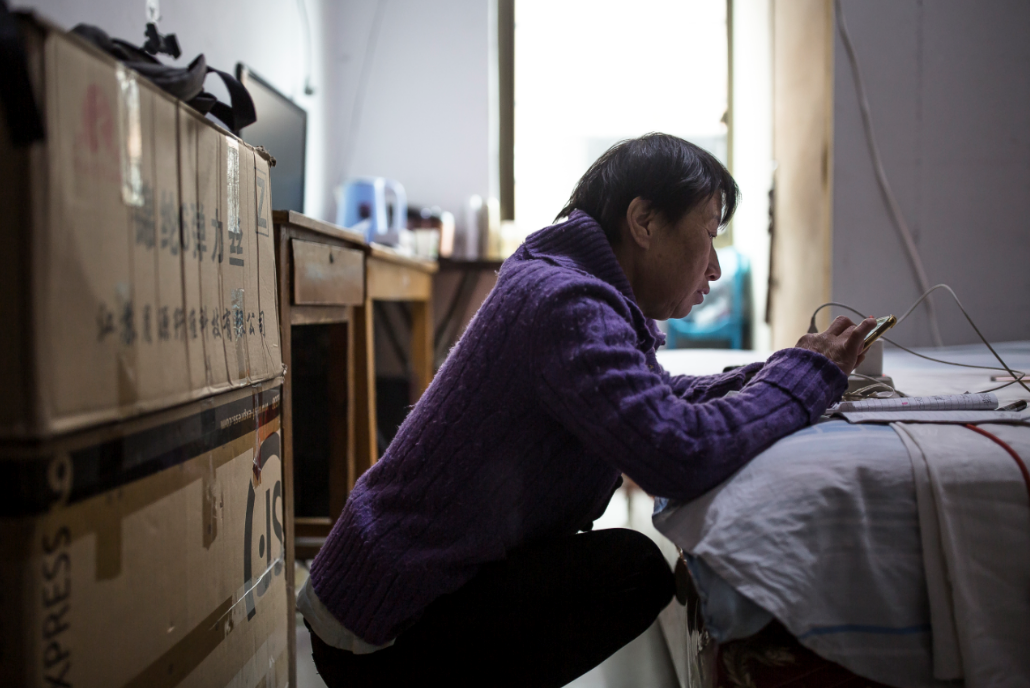 她是义乌市北下朱村的一位带货主播。今年4月,英姐定居在北下朱的最后一栋,99号楼。楼偏僻地缩在角落,要穿过好几层的街道、纸箱、电动车才能到达主干道。英姐的直播间也在角落,大部分时间,直播间里只有三、四十人。每次有新人进来,她都会用沙哑的声音大声念出对方的名字,再喊出欢迎。而10月中旬的一天,无数陌生名字涌进来,英姐举着儿子送的放大镜,一只眼皮松弛的大眼睛占据了半个屏幕。而屏幕的另一边,好奇的用户们打量着屏幕里的主播……