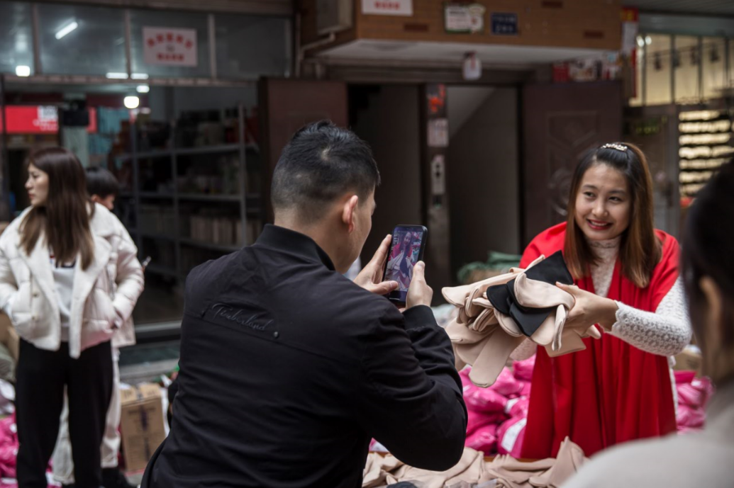 段子多是复制的。主干道上,一个穿着花色衬衫、松松垮垮的哈伦短裤的男人在人群中跳舞。他跳的是一首旋律简单、歌词直白的平台神曲《兄弟想你了》,他努力让自己和原作者保持同样的穿着、舞步,甚至用黑色马克笔给自己画了络腮胡。以前,北下朱最有名的段子是王哥泼水。王哥是个身材健硕的中年男人。在他的店里,有人拿货被拒绝,突然,一个男主播青筋暴起,跳上前,大吼一声:你不敢卖我敢卖。王哥二话不说,直接把一盆水泼在他的身上。男主播夸张地在地上打了个滚。周围一圈人见怪不怪,只是拿起了手机,把这个过程录下来。5月的时候,泼水的段子曾经让一些主播上了热门、爆了单。夏天的北下朱,同样的场景每天都在上演。很多新来的主播来王哥店门口等待被泼——这成了北下朱的打卡项目。最忙的时候,王哥一天要泼上百人,店门前总是湿漉漉的。在《中国青年报》的报道里,连怀孕5个月的孕妇也来排过队,等着挨泼,最后被他拒绝。夏天过去,泼水段子的热度也降了下来。不是所有人都能忍受被浇一盆冷水,更重要的,泼水视频不再能让主播们上热门了。模仿,便是北下朱的成功秘籍,一个段子火了,第二天,所有主播都会用同样的方式拍一遍。一样产品卖火了,所有人都会蜂拥而上。可刚来到北下朱的时候,英姐连微信都不怎么会用。她第一件事就是去找她的老师,那个用视频向她介绍义乌、并保证能赚钱的人。英姐交了3000块的学费,报名了培训班。在老师的建议下,她借了几千块钱,买了一台iPhone,她给手机贴了膜,又录了一个视频记录买手机的过程。视频里,她用浓重的东北口音抑扬顿挫地说:我会爱护命一样爱护它(手机),甚至还留下了眼泪。老师告诉英姐:你要找准定位。英姐认真听从,给视频配上了苦情的音乐,每个视频开头都会做自我介绍:我是一个来自东北吉林的70后,封面标着“负债20万,吉林英姐闯义乌”。