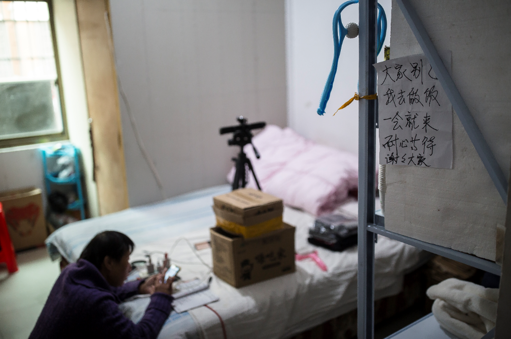 直播新世界的大门,仿佛只向年轻人敞开。进入主流视野的主播们,大多年轻、妆容精致、穿着入时。而镜头前的英姐50岁,脸上布满皱纹,从不化妆,一头短发凌乱着。“我叫英姐,是一个来自东北吉林的七零后。”她稍微坐定,不再弓着腰盯着跳动的人名,作自我介绍。英姐在向年轻人的习惯靠拢。她用东北口音吆喝着,“宝宝们给英姐点点关注”。刚开始念“宝宝”,她还有些不利索,发音时腮帮子鼓鼓的——在这之前,她习惯称呼粉丝为老铁和家人。伴着“宝宝们”的涌入,似乎这一次,“一夜暴富”的机会,终于要落到这个50岁女人身上了。在北下朱,每个主播都不避讳自己是为赚钱来的。“白天开三轮,夜里开豪车”的传说吸引着一批批的人。主播们对北下朱的富豪如数家珍:“有上亿资产的人在这块不下于50人,最少的。”数字无法查证,但这种想象支撑了他们在北下朱的生活。对于绝大多数主播而言,北下朱的一天从中午开始,很多主播会点一份十多块的外卖当午饭。北下朱没有几家饭店,也没有电影院、KTV或者是酒吧,唯一的一家咖啡厅在一公里外的5G大楼,人们谈论的主题只有一个——如何爆单。他们也并不在意生活品质,因为,北下朱的生活是临时的,大部分人的心态是“捞一笔”。每个人挂在嘴边的词就是“爆单”。这是个相对概念,在英姐看来,自己一天卖几百单就是爆单。但对大主播来说,这只是个零头罢了。为了爆单,主播们准备了很多步骤。他们要拍段子——实际上就是时长不超过一分钟的视频,然后让自己的段子“上热门”——这也是个相对概念,并非是真正登上平台的热门榜单,而是获得比较高的播放量。紧接着主播要马上开播,开始卖货。“视频引流,开播收割。”短视频电商平台的工作人员用八个字总结了这个规则,“很简单的逻辑。”但对于北下朱的主播们来说,“上热门”和“爆单”这两个通关密语,却像“芝麻开门”一样神秘。它被赋予了多层意味:成功、地位、幸运、一夜暴富……但是没人能说出它的准确定义或是量化标准。这是英姐来到义乌的第178天,看起来,她梦寐以求的爆单,要发生了。前一天,英姐拍了一条卖山药薄片的视频。举着8包五颜六色的膨化食品,英姐大声地吆喝着,“九块九包邮!”这是典型的北下朱产品——量多、日用百货类、九块九包邮。当这条不到一分钟的短视频播放量达到92万时,英姐觉得自己上热门了。亢奋,英姐这么形容自己的状态。她猜想:“我也要爆单了吧。能卖多少单呢?几千、几万单都有可能。”尽管每一单的盈利是个位数,上万单也能让主播盈利数万。“薄利多销”是以批发闻名的义乌常有的模式,直播带货又为主播们带来了实体店铺无法比拟的量级。上了热门,要马上开播,播得时间越长越好。这是北下朱每个主播的共识。根据数据,近七成的GMV(商品交易总额)产生在直播的时段,连续直播10多个小时是很常见的事情。甚至,北下朱的主播小晨,最长一次直播超过了30小时。这种马拉松式的直播,通常需要团队交替进行,一个人的体力很难胜任。英姐的直播从上午9点多开始,一个人盯着手机屏幕,一刻不停地讲话。“转战”新的平台不到两周,英姐还不知道怎么看同时在线人数,不知道屏幕对面同时在凝视她的到底有多少人。身边也没人可以和她分享这个喜悦。丈夫一早就出去打工了,她不敢打电话,怕扰乱对方的工作。直到下午,英姐才向粉丝们“请假”:“实在是受不了了,一早儿上的厕所,现在好几个小时了。”实际上,厕所距离座位不到一米,可几个小时过去了,一只无形的手按住了她,她一刻也不敢离开镜头前。晚上10点,丈夫回到家,英姐才对着镜头大口吞咽着当天的第一顿饭。到了直播的第18小时,英姐的直播间里还有几十个粉丝在留言区说话,她不舍得关掉直播,“得来不易的热门”,她反复强调。有粉丝在评论区劝她:“英姐,你别播了,休息吧!”还有人出主意:“你明天早上5点钟再播吧,那时候人多。”英姐决定相信这个说法。直播关闭后,界面上显示:本次直播共有10.2万人次观看。这是到达北下朱以来,英姐直播间里人数最多的一次,她对着屏幕,突然哭了出来。过去的几个月里,她也常常播到凌晨,直播间的人数通常是个位数,最后会变成她一个人,“会不会还有一个人给我作伴呢?”英姐喃喃自语。第二天凌晨5点,和往常一样,英姐在狭小的出租房中醒来,开播。这个不足10平米的房间朝北,阳光好不容易钻进窄小的窗户,又被空调挡住。整个北下朱收纳了上千个这样的格子间。格子间里,因为疫情、负债、失业……刚来北下朱的主播们各有各的“不幸”,“身上若无千斤担,谁愿他乡万里行。”在第一条视频作品里,英姐念出这句话。