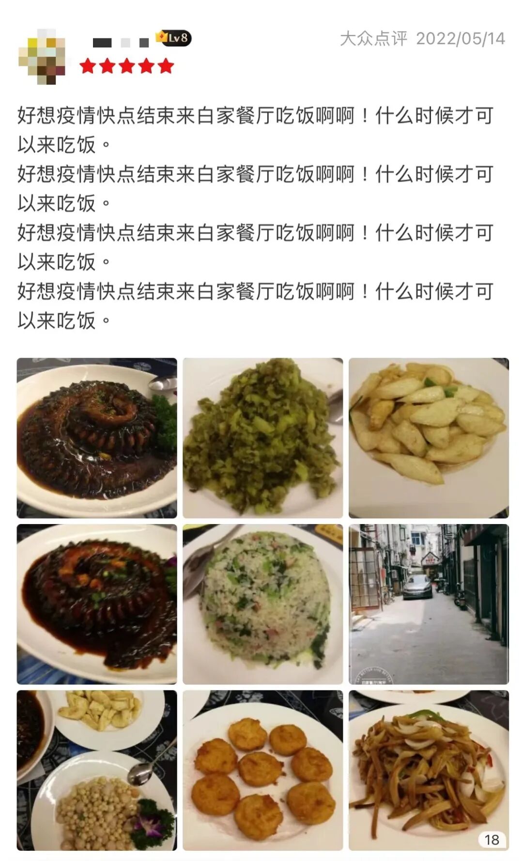 ▲ 老顾客在点评网站表达对白家餐厅餐食的想念。图 / 受访者提供