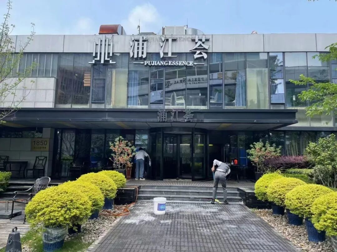 ▲ 浦江荟的员工正在打扫消杀。图 / 受访者提供