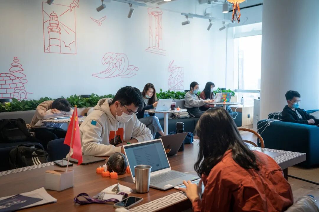 ▲ 上海某大学的学生在休息室里学习,学生多数是在纽约校区注册的中国留学生。图 / cfp