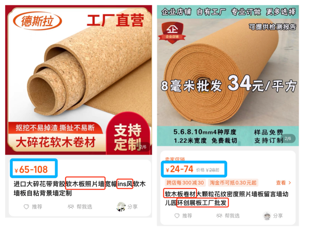 受ins风、氛围感等消费潮流影响,如今的家居装饰逃不开软木、渔网照片墙布置。如果你直接搜索软木、渔网照片墙,价格普遍较高。如果你搜索沙盘建模软木板、白色尼龙网,直接买原材料,同样的东西,价格能直降一半不止。