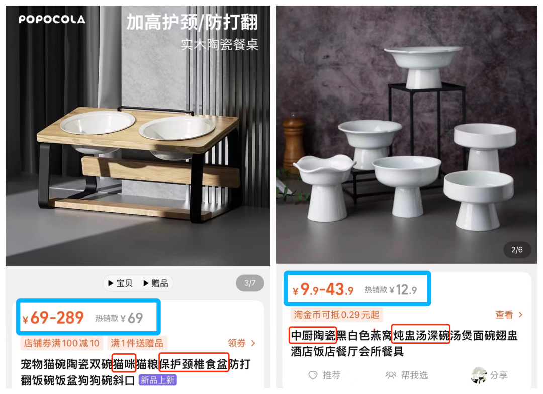 宠物护颈餐台的本质就是把宠物的饭碗、水碗抬高,搜索斜口高脚碗,就能买到更加物美价廉的替代品。