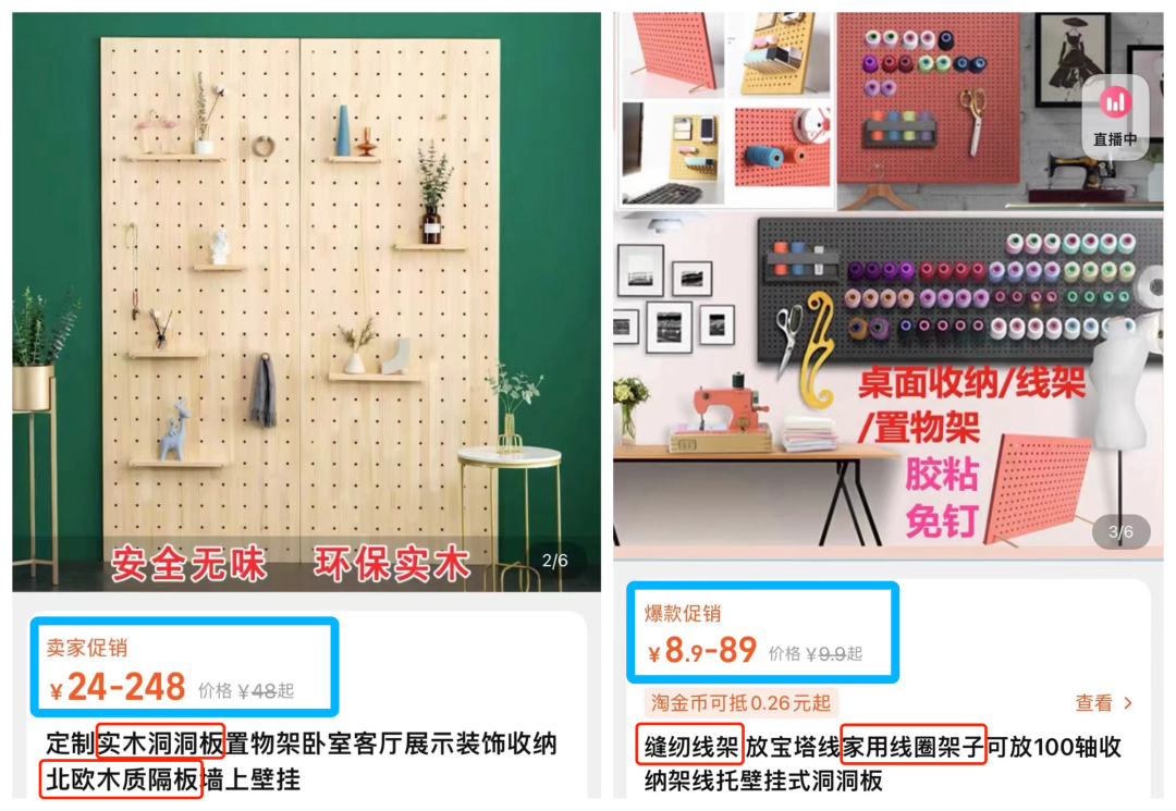 洞洞板作为近几年的装修新秀,搭配着“可挂万物”的噱头,引得无数人心向往之。趁着这股风头,洞洞板价格一再拉高,许多商品页面通常打出个位数的低价,结果你点进去发现,标好的5.5元,不过是一个挂钩的价格。