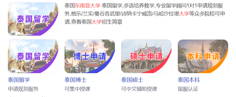 ▲ 搜索“东南亚”“留学”等词,会发现“中文辅助授课”一类字眼常常出现在留学中介的宣传界面。图 / 网络