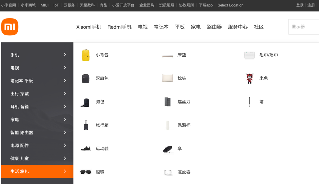 ▲ 小米的产品多样化,涉及多种生活用品。图 / 小米官网截图