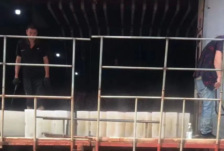 第二天,她想起了一些老工厂会用冰块降温,于是在电商平台上找同城的卖家,花600多元买下了20块工业冰块,并自己叫了货车,将冰块运到了公司。