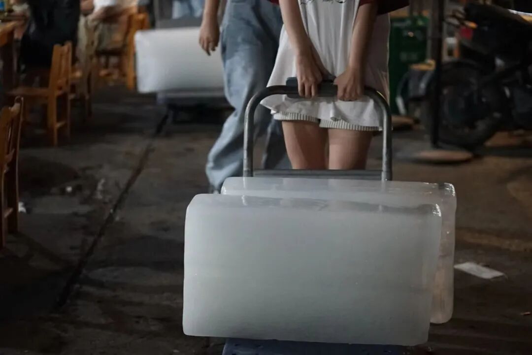 不能开空调的人们,高温中工作的人们,不得不依靠冰块,来对抗炎热。截至目前,全国超过260个高温预警正在生效,4000多家制冰厂也在不停运转,一块又一块冰块,被送往不同的地方。
