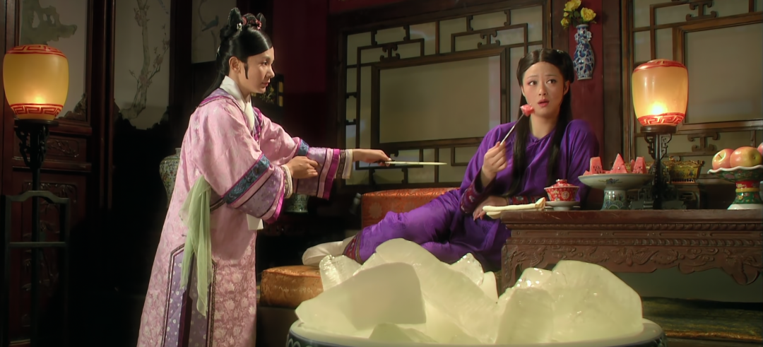 很快,白色大冰块竖在工位密集的过道上,有人拿来饮料、水杯甚至藿香正气水放在冰块上冰镇,还有人一边拍照一边评价道:“真是分分钟穿越到《甄嬛传》里华妃降温的画面。”
