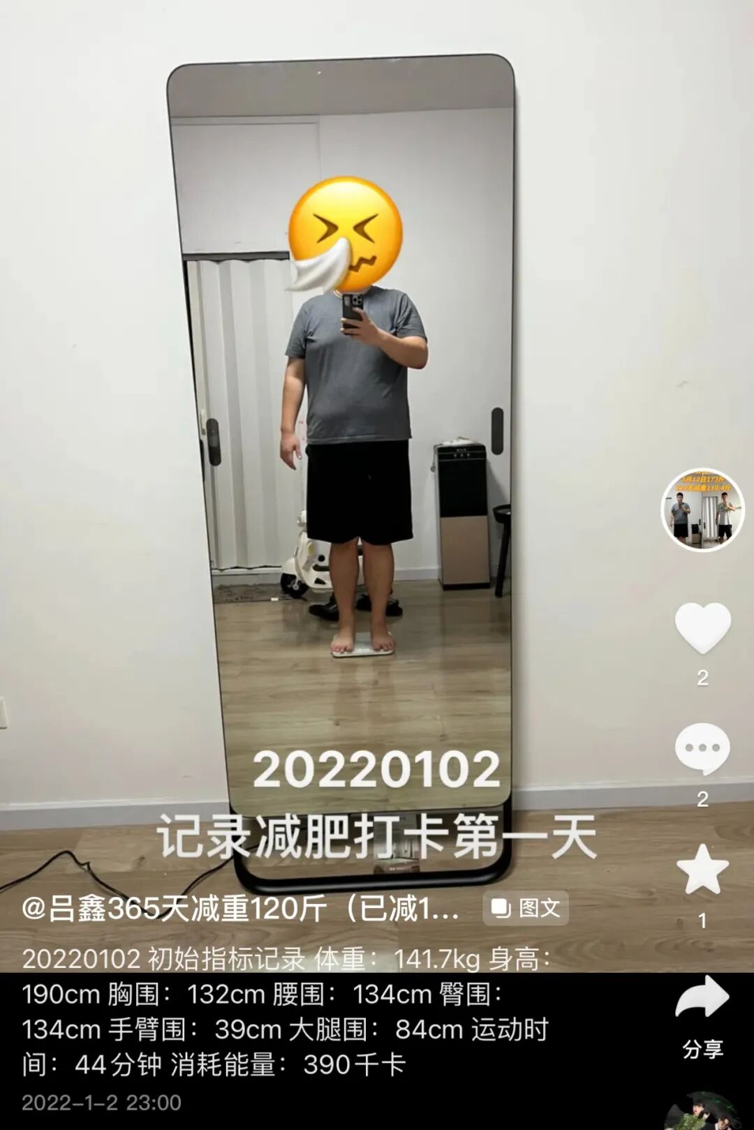 这是2022年的第二天。28岁的吕鑫看着镜子里的自己,想着医生下的死命令,决定开始认真对待减肥这件事。