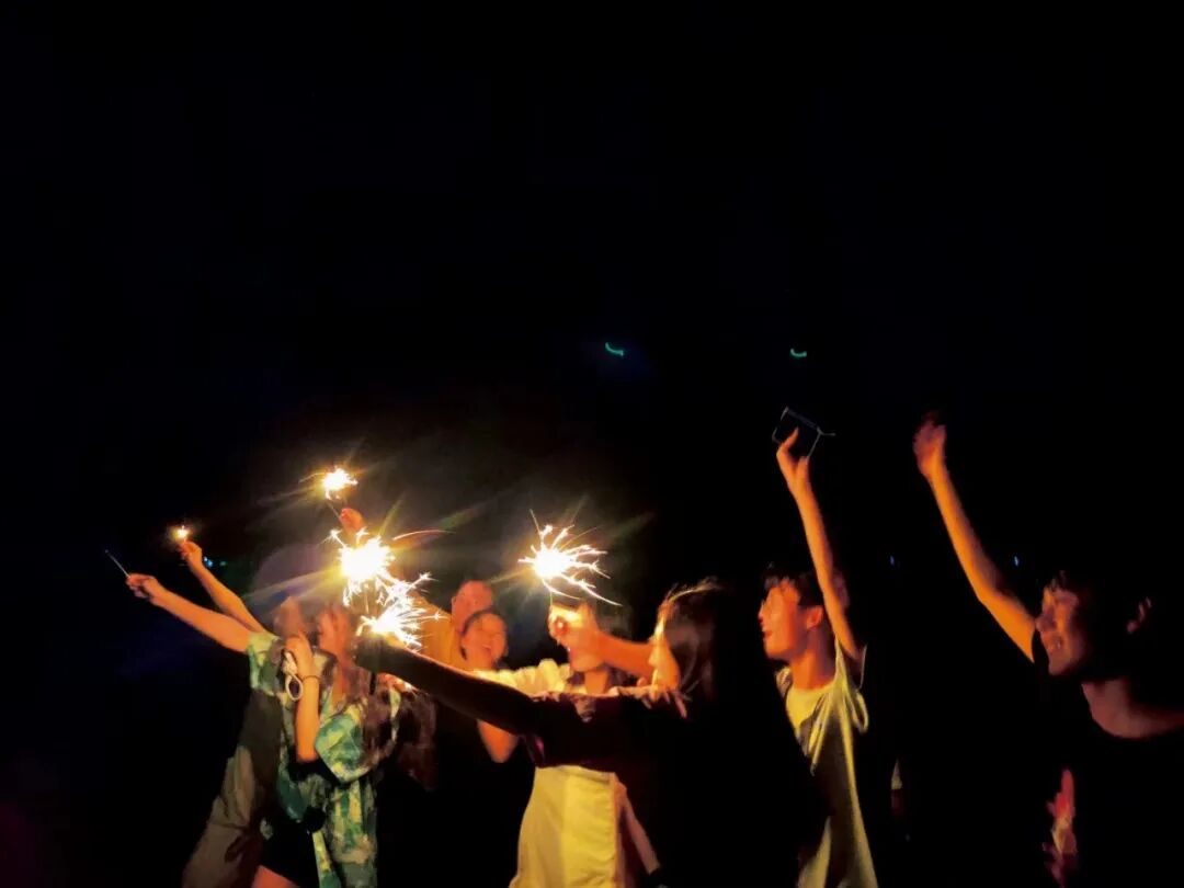 ▲ 槐落在涠洲岛做义工时和朋友们一起放烟花。图 / 受访者提供