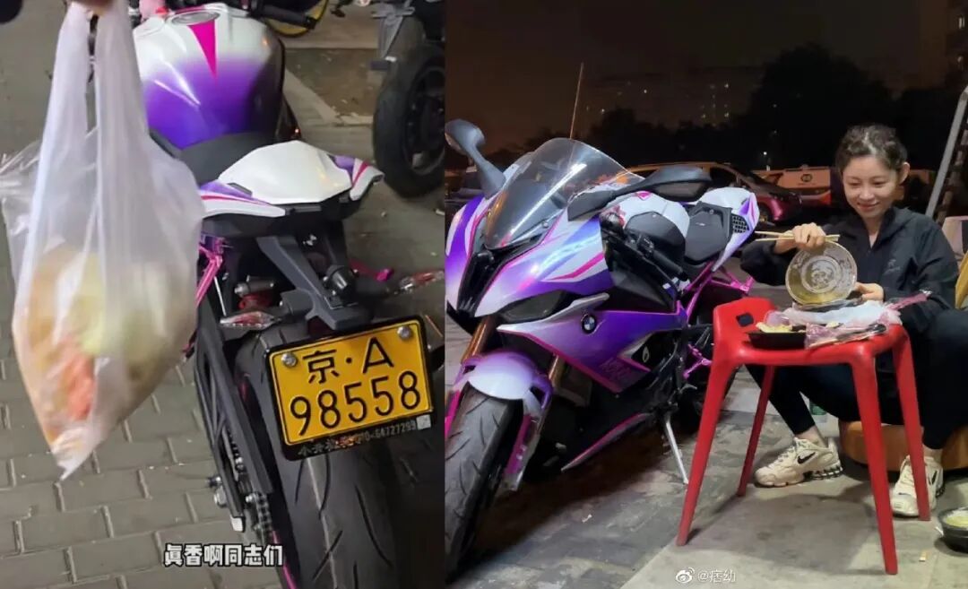 ▲ 痞幼常在社交平台上分享骑着京A大摩托扫街、吃小吃的快乐瞬间。图 / 痞幼的微博、小红书