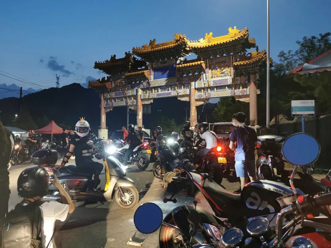 ▲ 2020年8月,在北京门头沟区妙峰山入口的牌楼前,汇聚着全市众多摩托车爱好者,在即将限制摩托车通行地段打卡、拍照留念。图 / 人民视觉