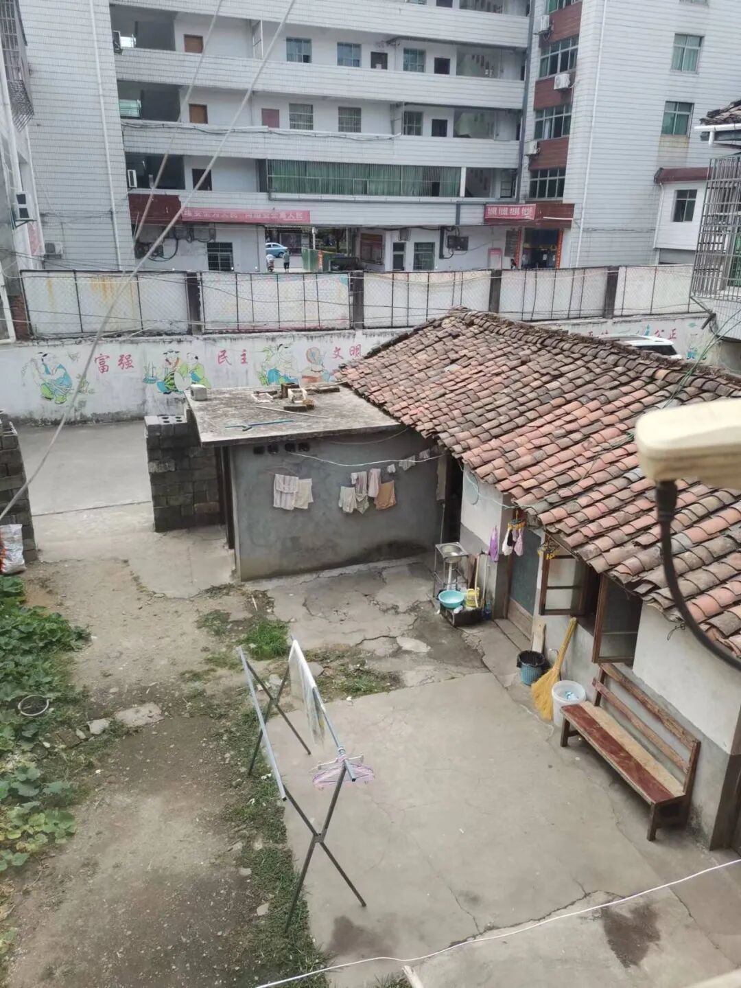 ▲ 从张瑶瑶的出租屋向下看,是她和几户人家的公用厨房。图 / 受访者提供
