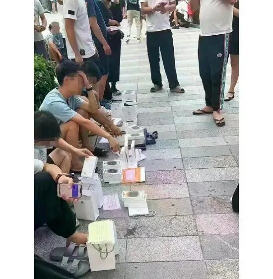 但新品发售后,最先强力出圈的,是一张有故事的网图——花坛草丛边上,坐了一排趿拉着拖鞋、垂头丧气的青年,其中一位左手掩面,神情苦恼。他们面前堆满了未拆封的iPhone 14系列手机。