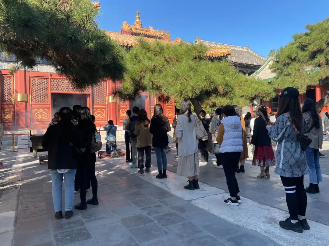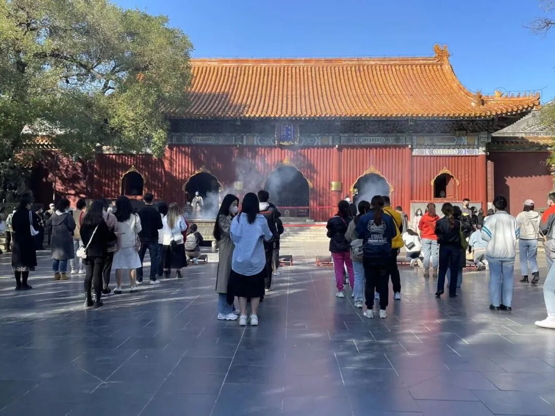 在北京,不仅雍和宫已经被年轻人“占领”,其他寺庙也有类似场景。位于北京植物园内的卧佛寺,由于与“offer”谐音,尤其受到祈求上岸的年轻人欢迎。计算机专业的学生程鹭,就是在向曾经成功保研的学长学姐讨教经验时得知这座庙的,“卧佛寺很灵的,可以去拜一拜”,学长的现身说法让程鹭心动。在保研前半个月,她拉上自己的三个室友一起去了卧佛寺。